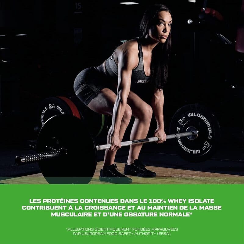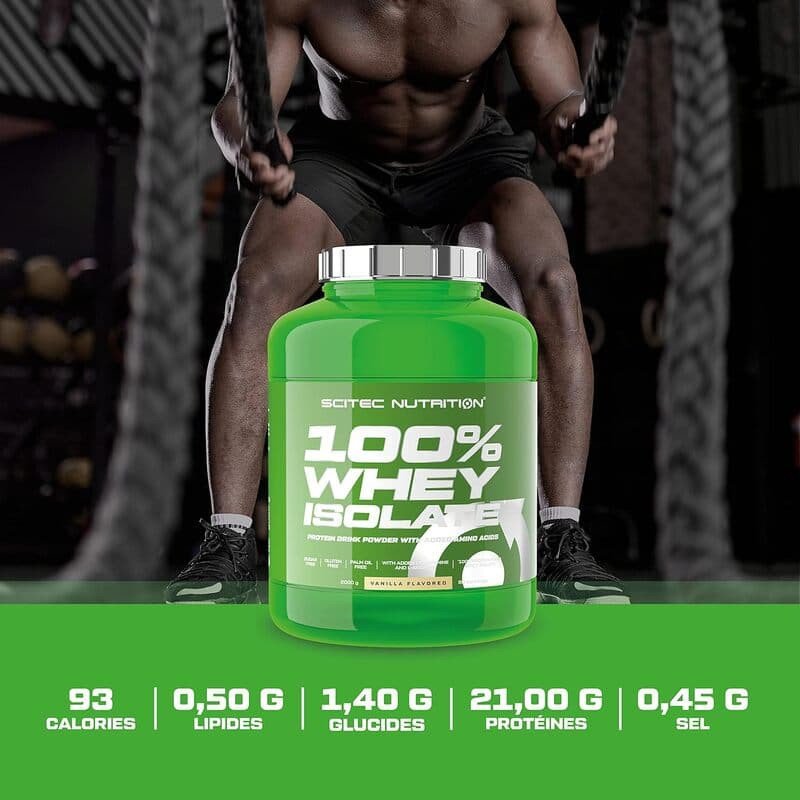 100 % WHEY ISOLATE de SCITEC NUTRITION est obtenu par une filtration profonde à partir du lait, c’est une protéine complète de qualité supérieure fortifiée en hydrolysate de lactosérum à absorption encore plus rapide. Cette formule contient beaucoup moins de glucides que d’autres wheys ! Elle ne comporte pas de sucre ni de lipide et pas de lactose puisqu’elle est filtrée et délactosée. Elle contient également les acides aminés indispensables dont les 9 acides aminés considérés comme essentiels pour la récupération, la croissance et la préservation des tissus. Cette whey est également enrichie en L-Glutamine, un acide aminé libre le plus abondant en circulation dans le sang et très important pour la reconstruction musculaire et la récupération. 100 % WHEY ISOLATE a une bonne digestibilité et se dissout facilement. Et ne contient pas d’aspartame.