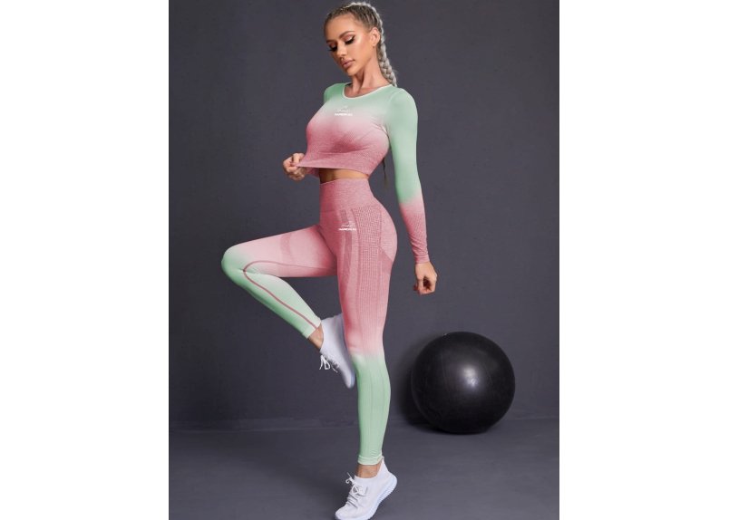 Le bas, un legging de sport, vient compléter l’ensemble. Il s’agit d’un modèle taille haute, qui souligne et flatte la silhouette. Le tissu extensible dans lequel il est conçu est doux au toucher, mais suffisamment robuste pour résister à l’usure. Il comporte une large ceinture élastique à la taille pour un ajustement optimal et une fermeture éclair discrète à l’arrière pour un rangement pratique.